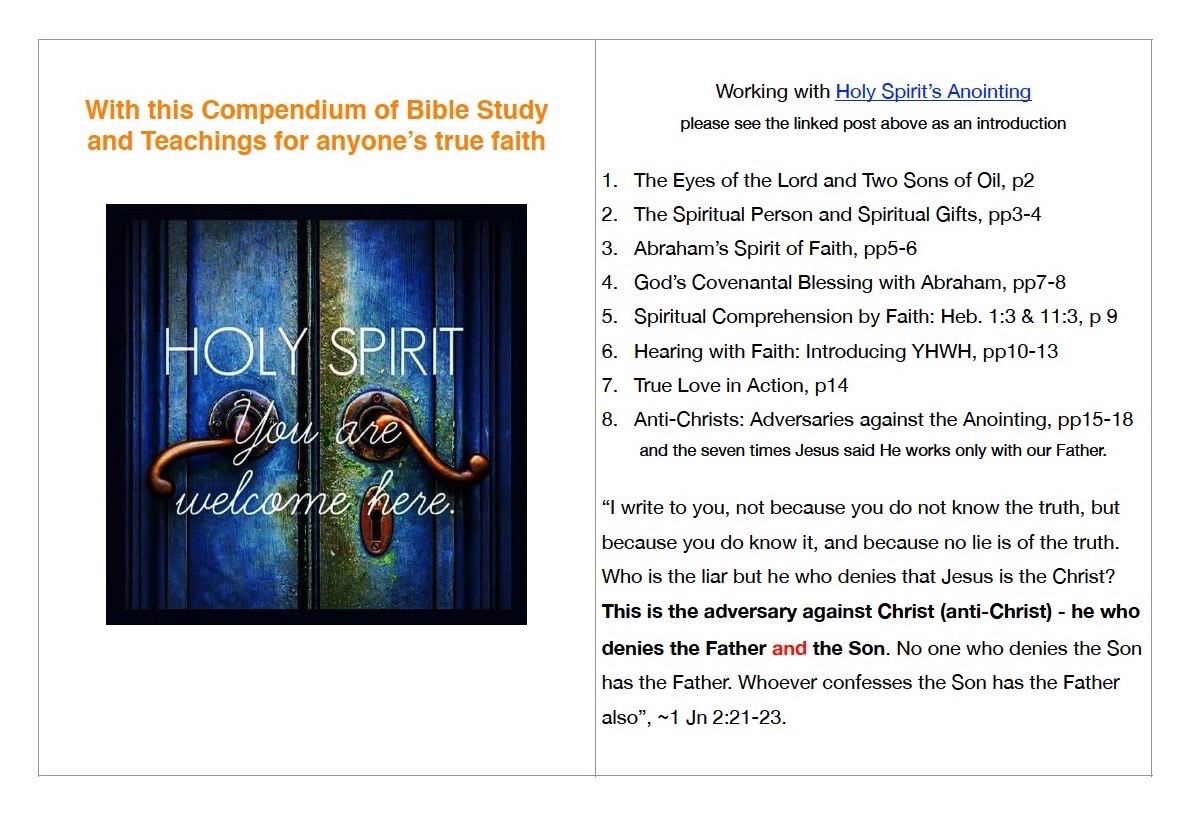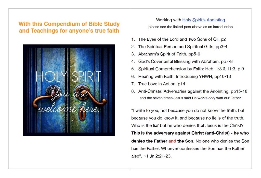 “The Burden” of this Compendium of Bible Studies and Teachings is that our faith arises in the same way as that of Abraham’s faith, and that this way ushers us into the use of Holy Spirit’s anointing for working His works”.