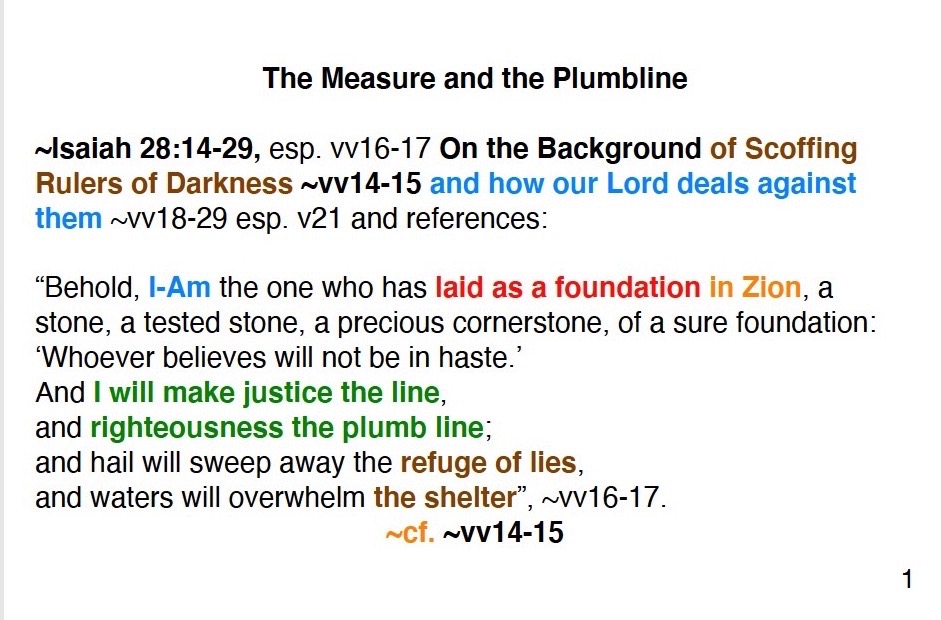 The three files pictured above are short write-ups of the scriptures I’ve used to teach, inspire and guide my faith for the topics they represent: Brokenness or Triumph is for anyone’s personal and pure-hearted faith, Justification and Righteousness is also contained in the above: Right Alignment document, and The Measure and the Plumbline contains God’s prophetic promise for our protection from ruling scoffers who scoff at our faith, e.g. in view of the current global, political and military climate.