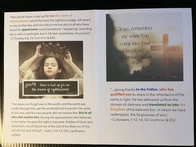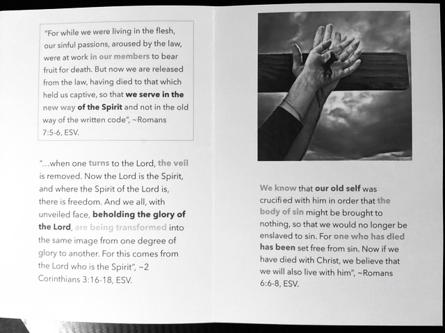 The cards can be used in a Role Play if a wooden cross is available. The scriptures shown in the open format teach of what it is to be Crucified with Christ, which Card-Booklet is available through that link.