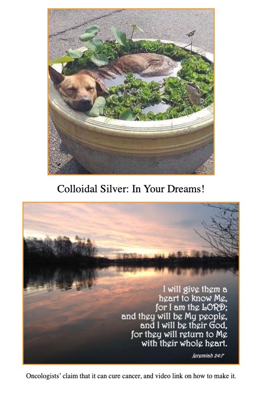 Colloidal Silver can be made up from the instructions and sources that this document presents. It’s also an antibiotic and healing agent that activates the immune system. The document presents a claim by an organisation of oncologists, that it’s been used to cure cancer.