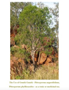The leaves of the Gumbi Gumbi tree – Pittosporum angustifolium, previously: P. phyllireaoides – are used by (ab)originees for a whole range of curative, treatment and preventative measures as a tea, taken orally. It’s bitter to the taste and slightly ‘rank’ but it’s a very effective immune system upgrader and even a healer. This document can give you the “run down” on where to get it and how to use it.