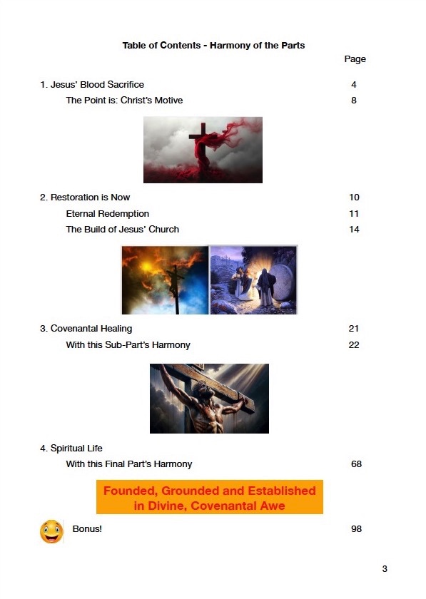 • The opening section of nine pages, named: Jesus’ Blood Sacrifice, introduces the significance of Jesus’ bloodshed as this “eternal axis of grace”, as the central theme for the whole book.